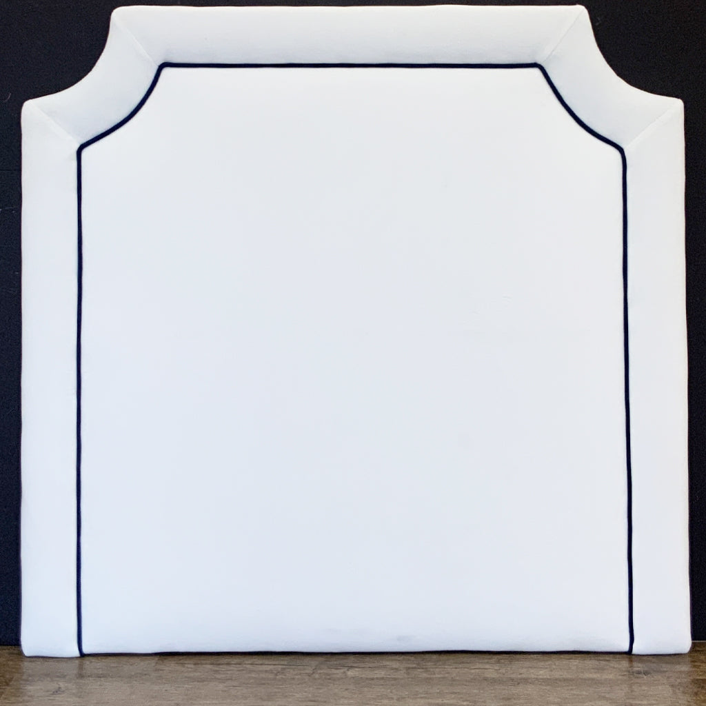 Headboard - (ALLOW 1 MONTH) Bella Deep Blue with Bella White Piping