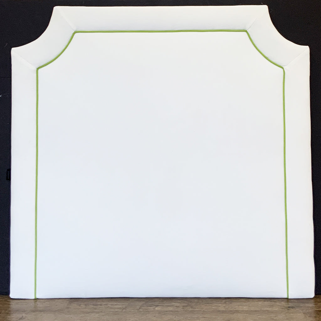 Headboard - (ALLOW 1 MONTH) Bella White with LemonLime Linen Piping