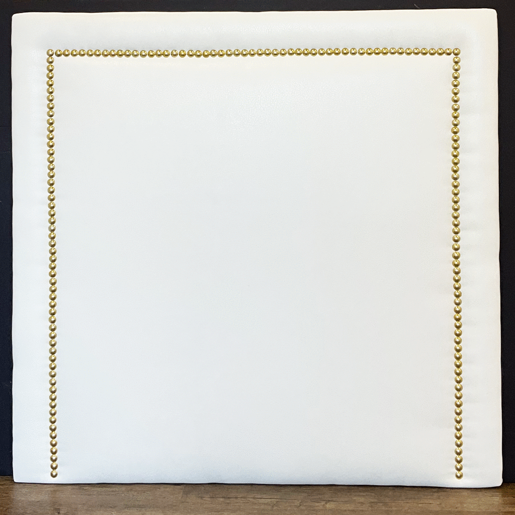 Headboard - (ALLOW 1 MONTH) Gold Nailhead in White Faux Leather SQUARE